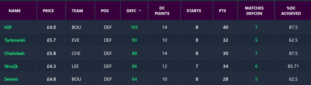 Starting FPL GW27 transfer targets list is the 4.0 million defender everyone seems to be talking about and for good reason. James Hill has returned in his last 4 games (where he played Liverpool (H), Wolves (A), Aston Villa (H) & Everton (A)) giving 3 assists and crossing Defcon threshold each time. In fact, he has the Highest Defcon in the league across positions in the last 4 Gameweeks.
