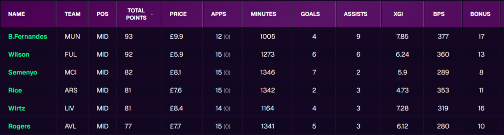 We’ve selected a midfield four of Wilson (5.9m), Semenyo (8.1m), Rogers (7.7m) and Bruno (9.9m) for FPL GW28…