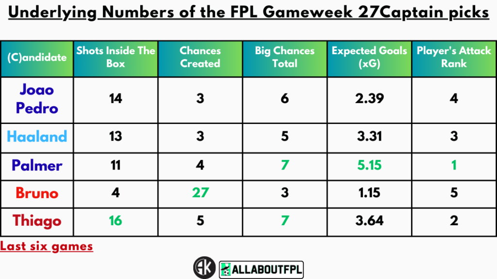 FPL GW27 Captaincy Metrics- Top Captain Picks based on Stats and Analysis