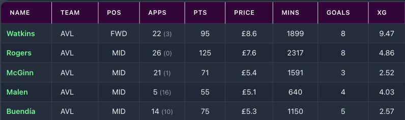 - Villa have a good run of 5 Games in the next 7 Gameweeks where they face teams who struggle away from home (Leeds, Sunderland), bottom of the table Wolves, and West Ham (who are in the bottom 2 for key defensive metrics), and a Forest side struggling at the moment.