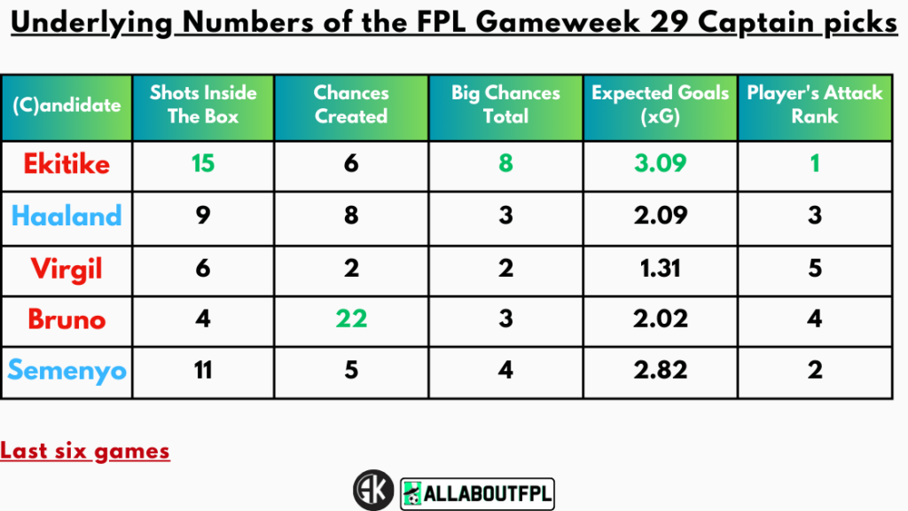 Underlying Numbers of the FPL Gameweek 29 Captain Picks