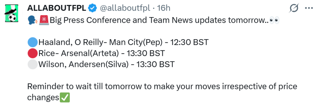 We’ll be covering differential picks, transfer targets, Buy, Hold, Sell analysis, scout picks, gameweek preview, captaincy metrics, FPL GW29 tips, and more. Keep checking allaboutfpl.com for all our blogs. We’ll also be posting regularly about the same on our social media accounts so follow us on Twitter, Instagram, Threads and Facebook keep our notification ON.